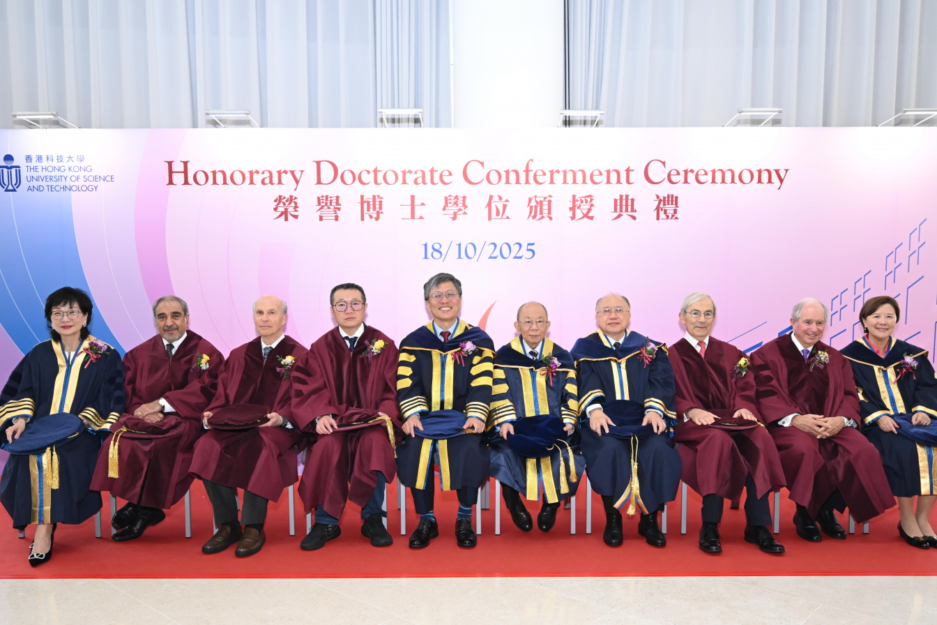The Hong Kong University of Science and Technology (HKUST) today held its Congregation 2025, conferring Honorary Doctorates upon five prominent and distinguished leaders. The awards were presented by HKUST Pro-Chancellor Dr. John CHAN Cho-Chak in recognition of their exceptional achievements and contributions to society.