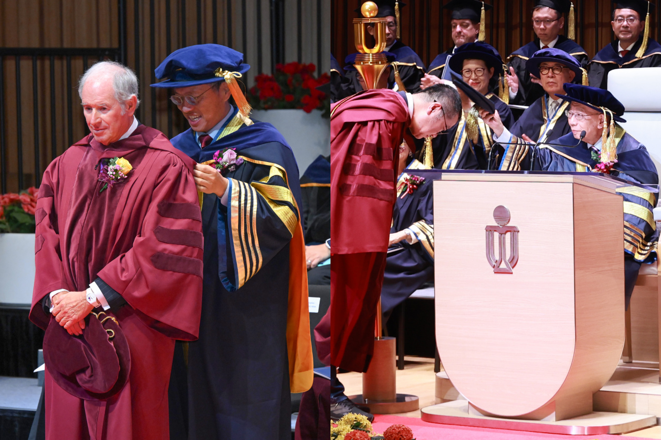 HKUST Council Chairman Prof. Shum praised the honorary doctors for their outstanding achievements and contributions to society. He said, “These five honorary doctors are trailblazing exemplars whose accomplishments have inspired the global pursuit of excellence. They have continuously broken new ground in their respective fields, advancing global development through their foresight and steadfast determination. Their exemplary legacy motivates faculty and students at HKUST to emulate their success, demonstrating the courage to challenge the status quo, embrace innovation, and leverage knowledge to drive societal progress, ultimately shaping the future.”