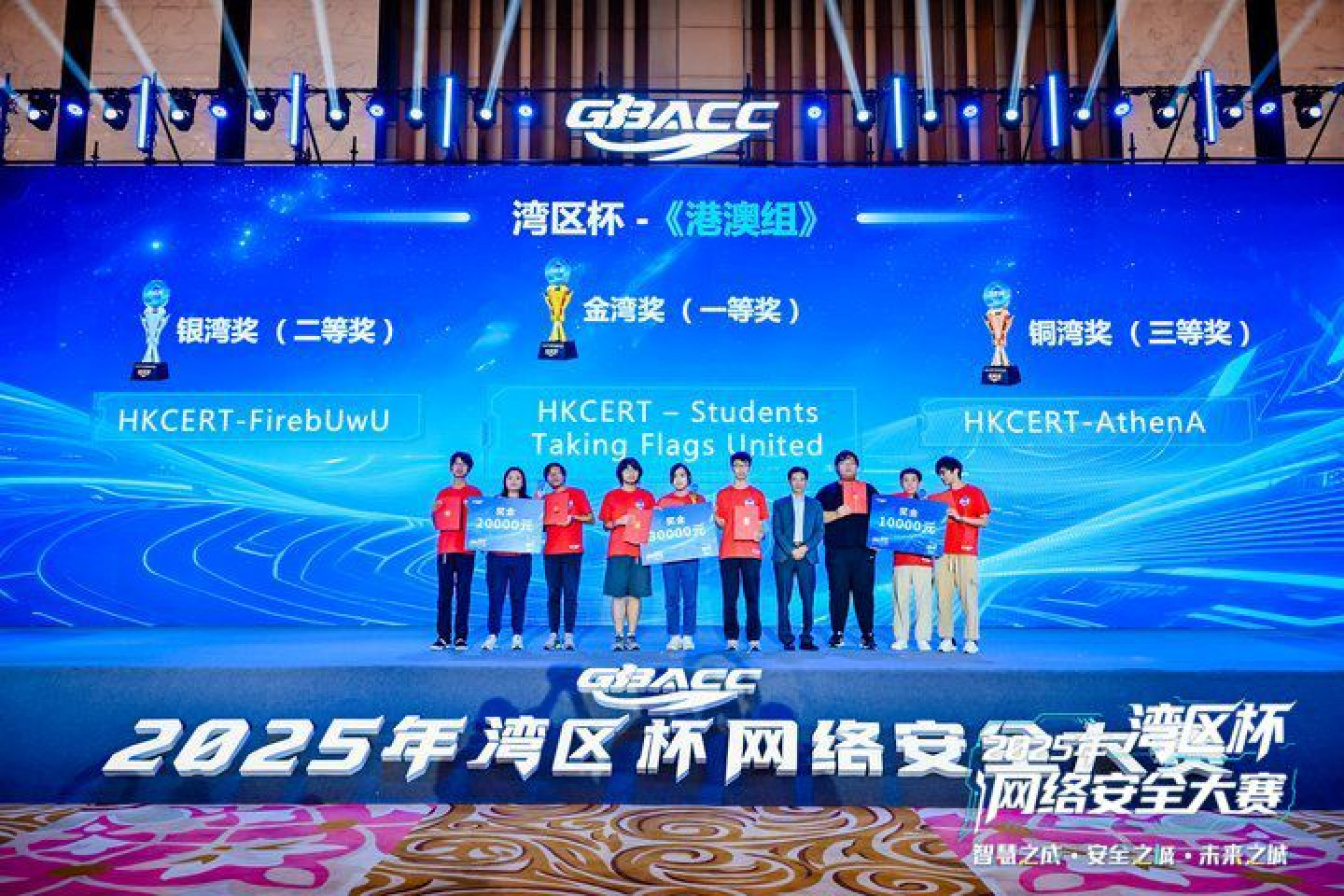 We are pleased to announce that the HKUST Firebird Cybersecurity Competition Team from the Department of Computer Science and Engineering has recently won the Championship (金灣獎) and First Runner-up (銀灣獎) in the Bay Area Cup — Hong Kong Macao District (灣區杯 - 港澳賽區). This nation-level tournament was jointly organized by the Guangdong Provincial Cyberspace Administration, the Guangdong Provincial Public Security Department, the Guangdong Provincial Education Department, and the Guangdong Provincial Committee of the Communist Youth League. It was co-hosted by China Telecom Guangdong Branch and the Guangdong Provincial Computer Information Network Security Association.