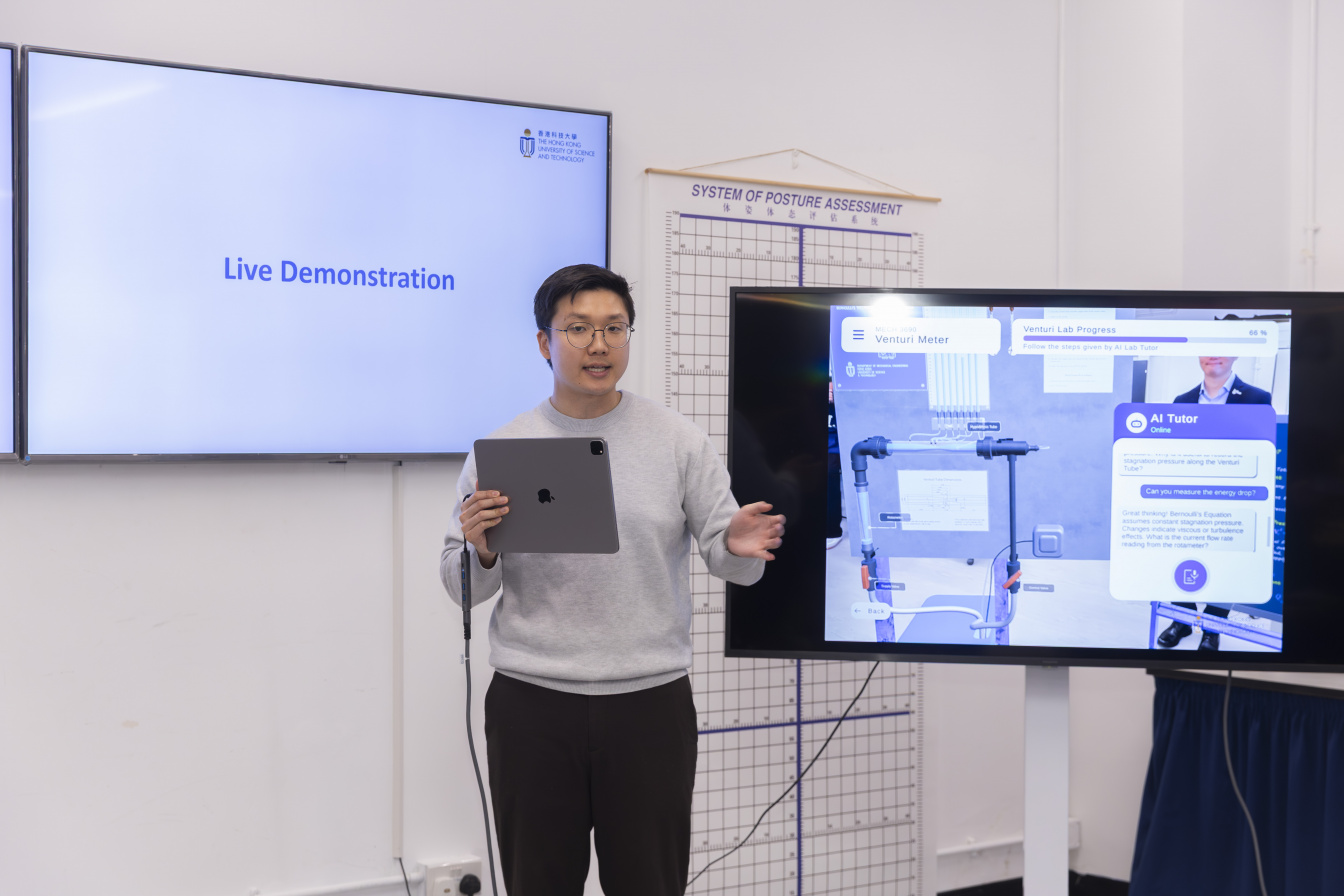 A team led by Prof. Larry LI, Associate Head and Associate Professor of the Department of Mechanical and Aerospace Engineering (MAE) at The Hong Kong University of Science and Technology (HKUST), along with PhD student Jungjin PARK, has developed an AI-enabled augmented reality (AR) platform for immersive learning. This platform offers students virtual laboratory experiences, enabling them to practice experiments and grasp key concepts and theories in mechanical and aerospace engineering. Their innovative solution recently earned the Silver Award in the Immersive Experiential Learning category at the QS Reimagine Education Awards 2025, often regarded as the “Oscars” of education.