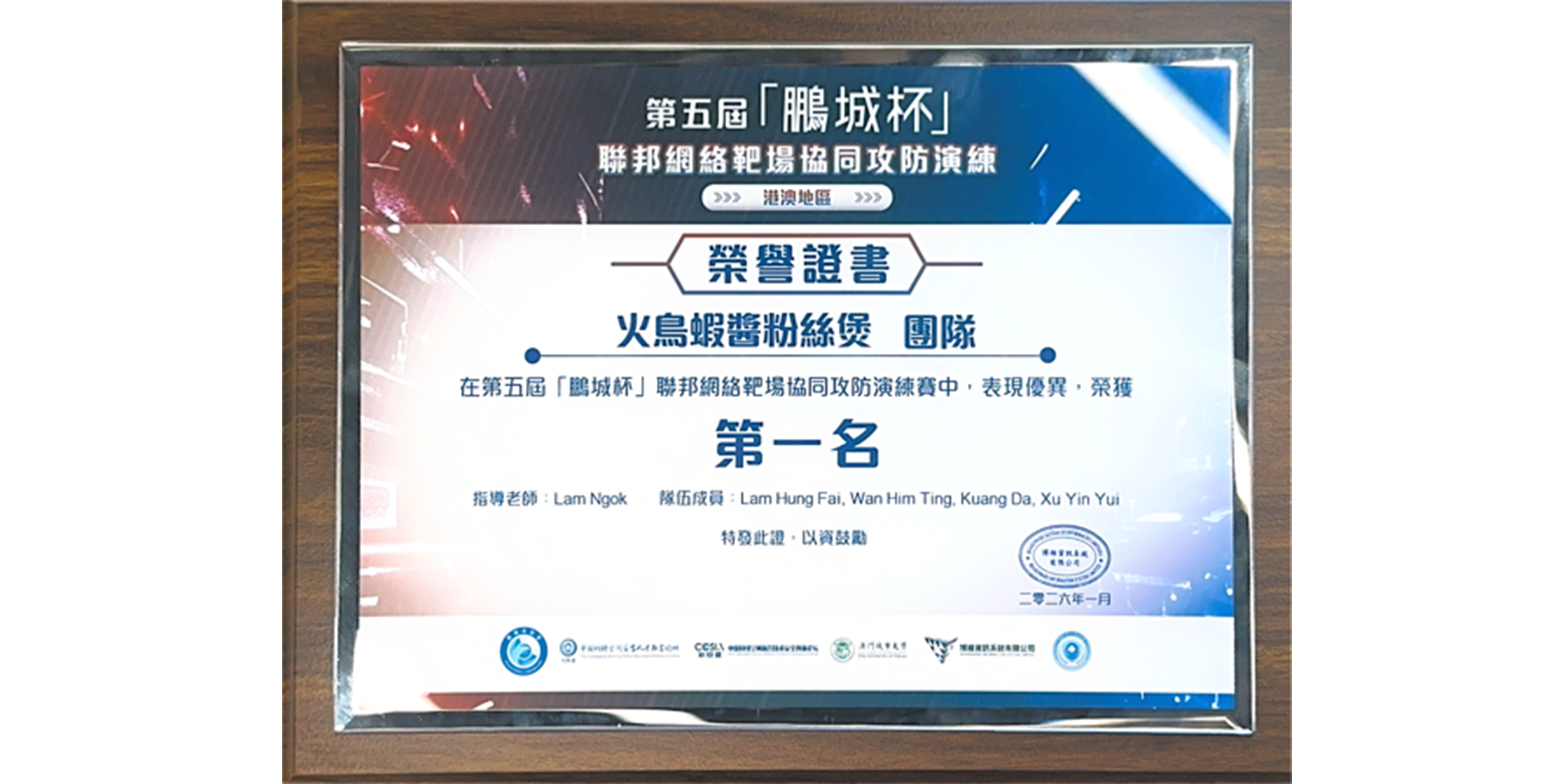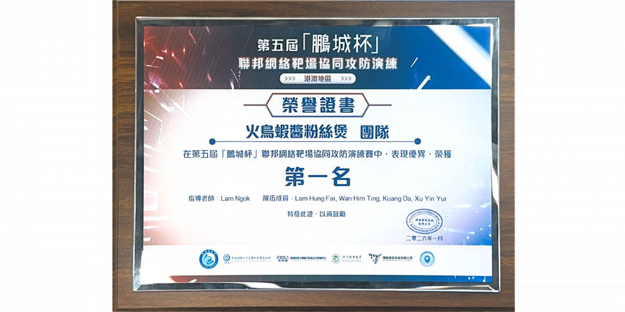 The HKUST Firebird Cybersecurity Competition Team from the Department of Computer Science and Engineering won the Championship in the Fifth “Pengcheng Cup” Federal Cyber Range Collaborative Attack-Defense Exercise – Hong Kong and Macau District (第五屆「鵬城杯」聯邦網絡靶場協同攻防演練 – 港澳賽區). Supervised by Dr. Alex LAM, the victorious team includes LAM Hung-Fai (current Firebird team leader), WAN Him-Ting (former COMP 4633 student), KUANG Da (former COMP 4633 student), and XU Yin-Yui (former COMP 4633 student).