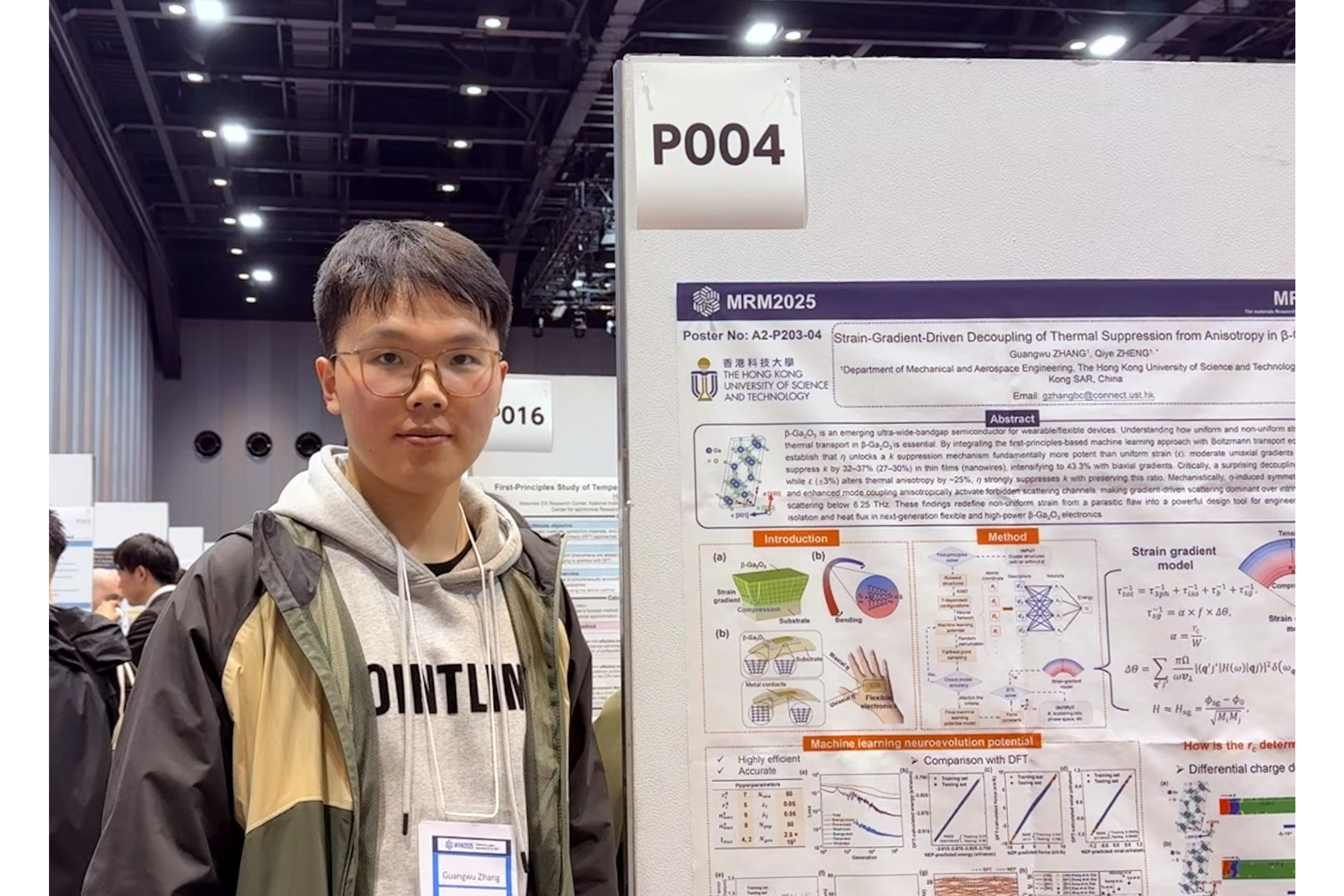 Mechanical Engineering PhD student ZHANG Guangwu received a Poster Award for his paper entitled “Significant Suppression in Thermal Transport of β-Ga2O3 Induced by Inhomogeneous Strain” at the Materials Research Meeting 2025 (MRM2025), which was held in Yokohama, Japan from December 8-13, 2025. Guangwu’s supervisor is Prof. ZHENG Qiye, Assistant Professor of the Department of Mechanical and Aerospace Engineering.