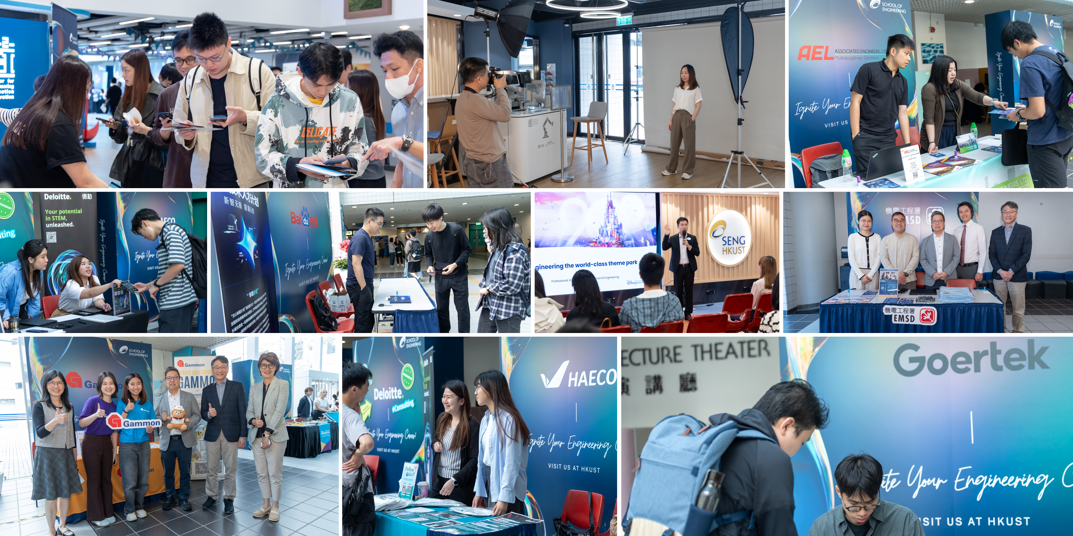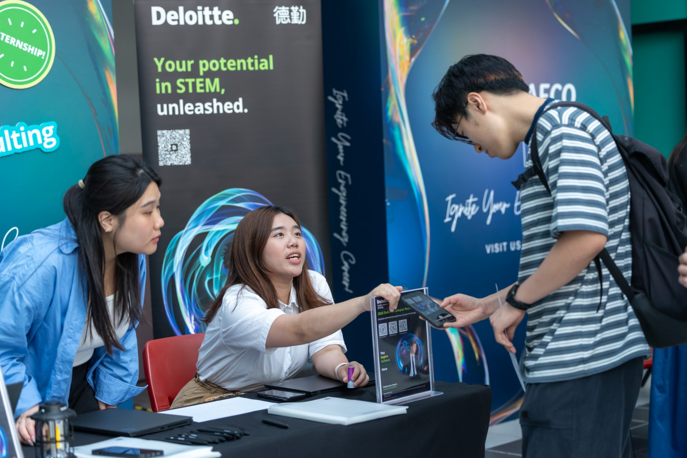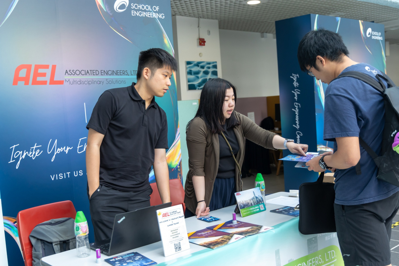 Hosted by the Center for Industry Engagement and Internship (IEI) at the School of Engineering, the event showcased an impressive array of employers from various sectors: AEL, Baidu, Deloitte, EMSD, Gammon, Goertek, HAECO, Hong Kong Disneyland, HSBC Technology Centre China, Huawei, iFLYTEK, Kingboard, Mott MacDonald, and Tencent.
