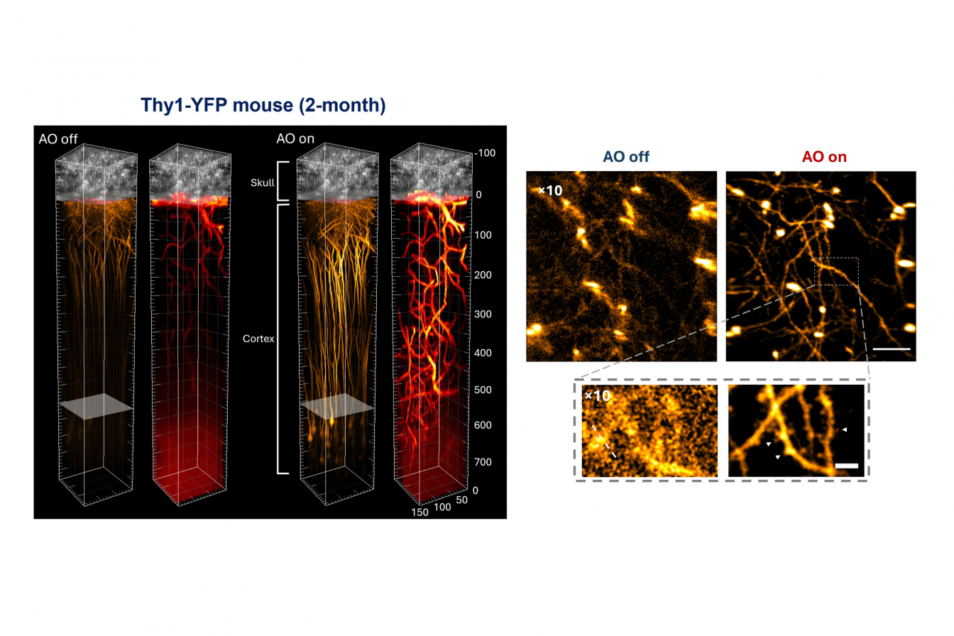 瞿教授表示:「这种对清醒实验动物的高分辨率、近乎无创的实时观测,在过去因技术限制一直未能实现。新技术具备快速校正像差的能力,不仅可实现高质量成像,亦不会对实验小鼠的脑组织造成损伤。在不受麻醉药物干扰的情况下,我们能够以亚细胞级分辨率捕捉实验小鼠大脑中神经元、胶质细胞和血管的动态变化,这将有助科学界深入探索人类脑部在健康和疾病状态下的各种运作,为神经科学研究开辟全新视野。」