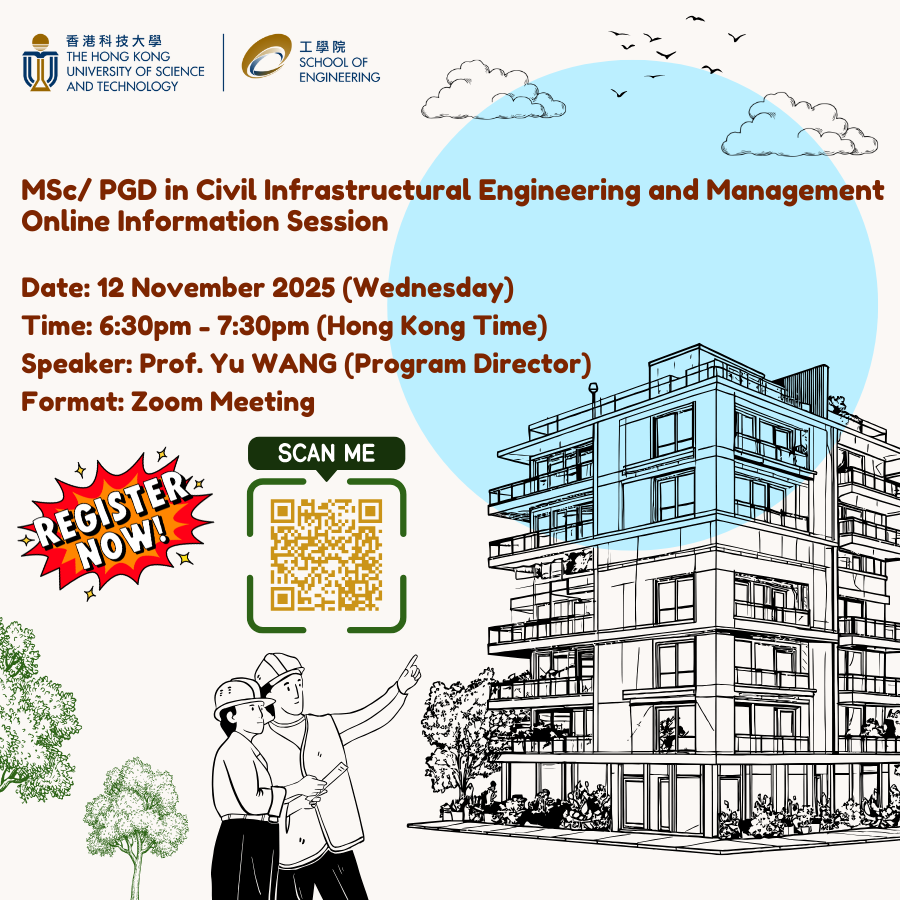 申請者必須持有二等榮譽或以上的土木工程或相關工程領域的學士學位,或具有獲認可大學或大專院校所頒發的同等學歷資格。有關英語能力要求,請查閱香港科技大學霍英東研究生院網頁。
