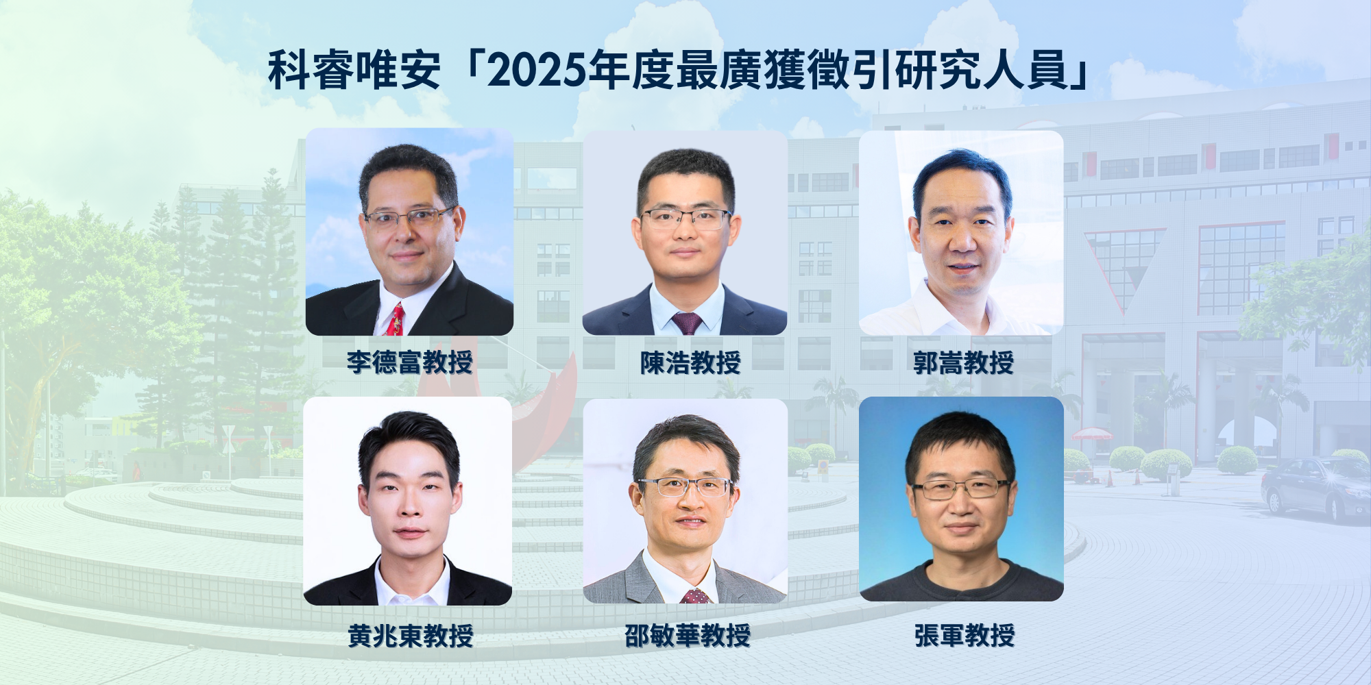 工學院六位教授榮膺科睿唯安「2025年度最廣獲徵引研究人員」